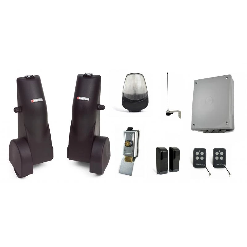 Motorisation PROTECO à roue pour portail 2 battants de 250 kg et 2,50 m maximum par vantail.